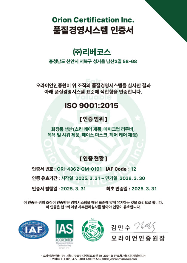 인증번호 ISO 22716